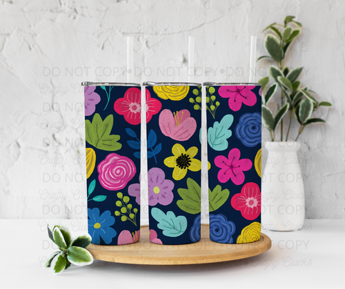Navy Bold Floral Tumbler